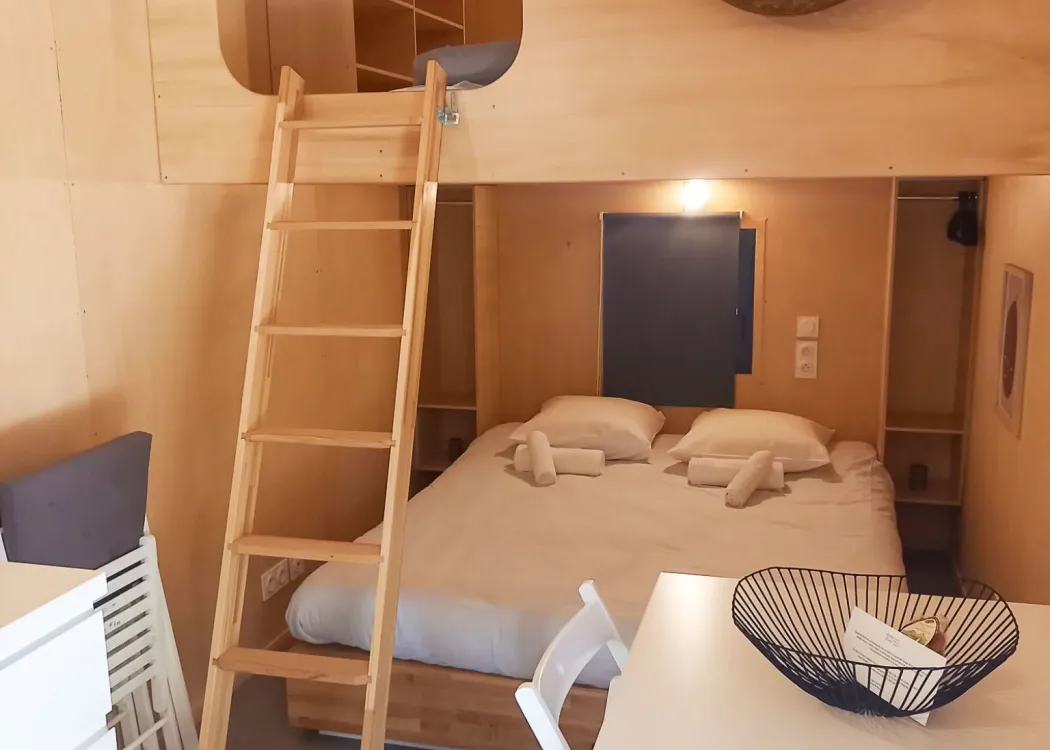 Découvrez un hébergement atypique qui vous plonge dans un univers dépaysant et inspirant. Inséré dans la végétation, bardé de bois, cet hébergement allie design, confort en parfaite communion avec la nature. Sa grande baie vitrée et sa terrasse font entrer soleil et nature au cœur de vos vacances en Ardèche.